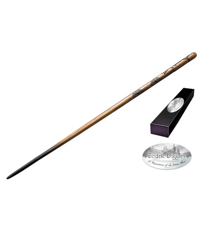 Cédric Diggory est un élève de l’école Poudlard et membre de la maison Poufsouffle. Interprété par Robert Pattinson, il représente sa maison en étant capitaine et attrapeur de l’équipe de Quidditch. Cette réplique de sa baguette magique imite un bois clair dégradé, noircie à la pointe et gravée sur le manche. C’est une baguette incontournable pour les collectionneurs et les fans de la saga Harry Potter.