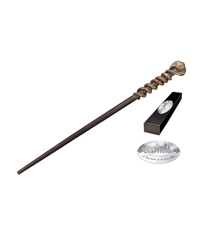 Dean Thomas est un sang-mêlé, son père est décédé car il refusait de se joindre aux Mangemorts. Comme Harry, il a vécu avec des moldus. Une fois arrivés à Poudlard ils se lient d’amitié et entrent dans la maison Gryffondor. Il rejoint ensuite l’armée de Dumbledore pour combattre Lord Voldemort. La réplique en résine de sa baguette magique imite un bois clair et son manche est ornée d’un fil qui s’enroule autour de la baguette. Cette belle réplique plaira aux collectionneurs fans de la maison Gryffondor.