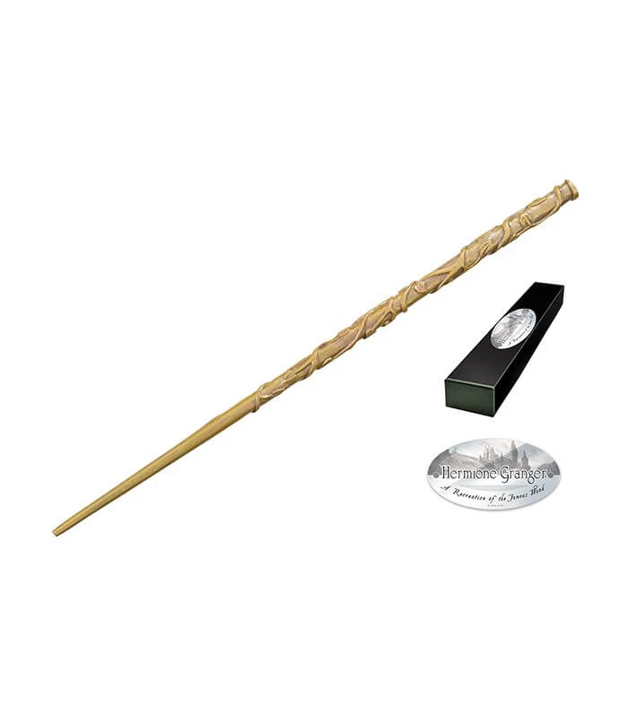 Hermione Granger fait partie du trio légendaire de la saga Harry Potter. Interprétée par Emma Watson, elle est une fille de moldus surdouée qui est d’une grande aide pour Harry et Ron au cours des tomes. Cette réplique de sa baguette magique imite le bois de vigne et est ornée de reliefs végétaux. Pour l’anecdote, la baguette d’Hermione renferme du ventricule de dragon. C’est un objet de collection qui plaira aux Potterheads.