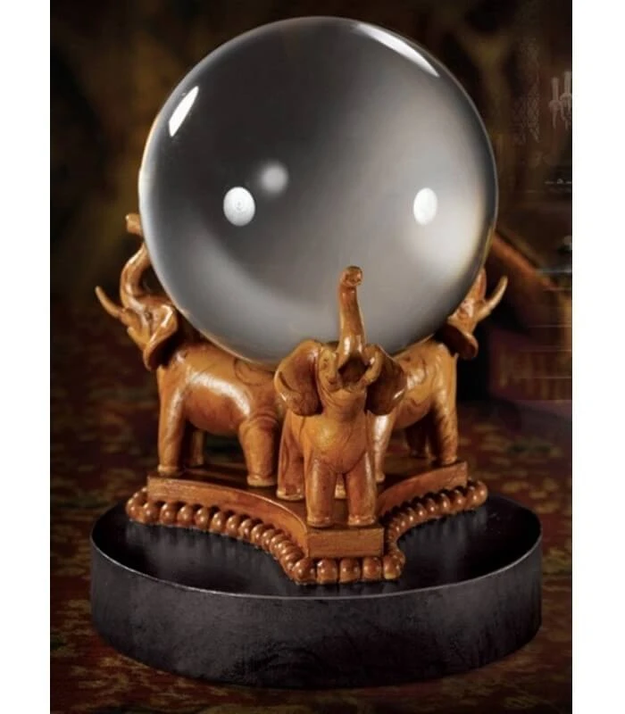 Que l’avenir vous réserve-t-il ? Cette boule de cristal de divination vous en donnera peut-être la réponse ! En effet, il s’agit ici de la réplique de la boule de divination de Sibylle Trelawney, professeur à Poudlard. Bien que ses prédictions puissent parfois paraître douteuses, beaucoup d’entre elles furent d’une importance capitale. Découvrez la réplique de la boule de cristal de Trelawney, artefact nécessaire à tous les sorciers, et dont sa base en porcelaine et ses trois éléphants suffiront à insuffler une aura magique et mystérieuse à votre foyer ! Alors si vous un avez moment de doute pour votre futur, jetez un œil dans cette boule de cristal….en espérant que vous n’y verrez pas le Sinistros !