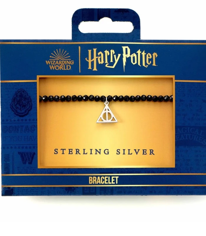 Donnez vie au monde merveilleux d’Harry Potter avec ce magnifique bracelet en cristal noir avec breloque Reliques de la Mort en argent sterling ! Fabriqué au Royaume-Uni, ce bracelet élastique de 18 cm est le cadeau significatif parfait pour les fans de Potter ou un excellent ajout à leur collection.