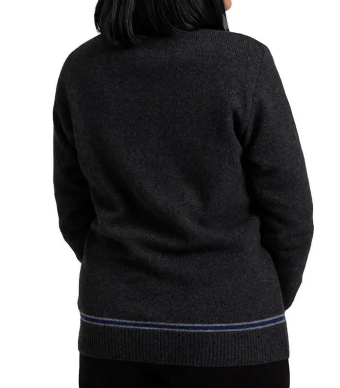 Ce cardigan col en V Serdaigle, de couleur charbon, est tricoté et assemblé dans la même manufacture écossaise qui a confectionné les costumes pour les acteurs et figurants de la saga Harry Potter.