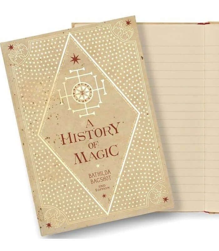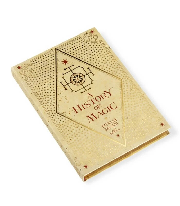 Nul besoin d’aller à Fleury et Bott pour trouver les livres de cours pour Poudlard ! Voici le journal à l’effigie du livre « Histoire de la Magie » écrit par la fameuse Bathilda Tourdesac, un incontournable des libraires de sorciers, et dont Harry Potter s’est inspiré pour nommer sa chouette. Le journal s’ouvre sur 200 pages lignées aux bords dorés, et avec un ruban pour marquer vos pages. De quoi écrire vos propres histoires !