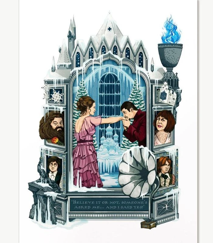 Cette illustration des designers Minalima est inspirée du livre Harry Potter et la Coupe de Feu.