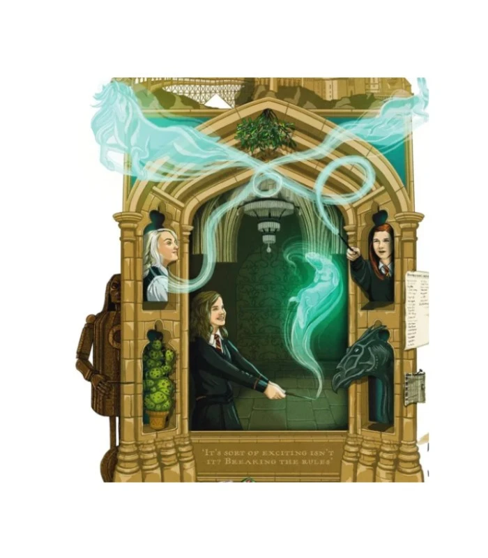 Cette illustration des designers Minalima est inspirée du livre Harry Potter et l’Ordre du Phénix . Hermione Granger, Ginny Weasley et Luna Lovegood dévoilent leurs Patronus.