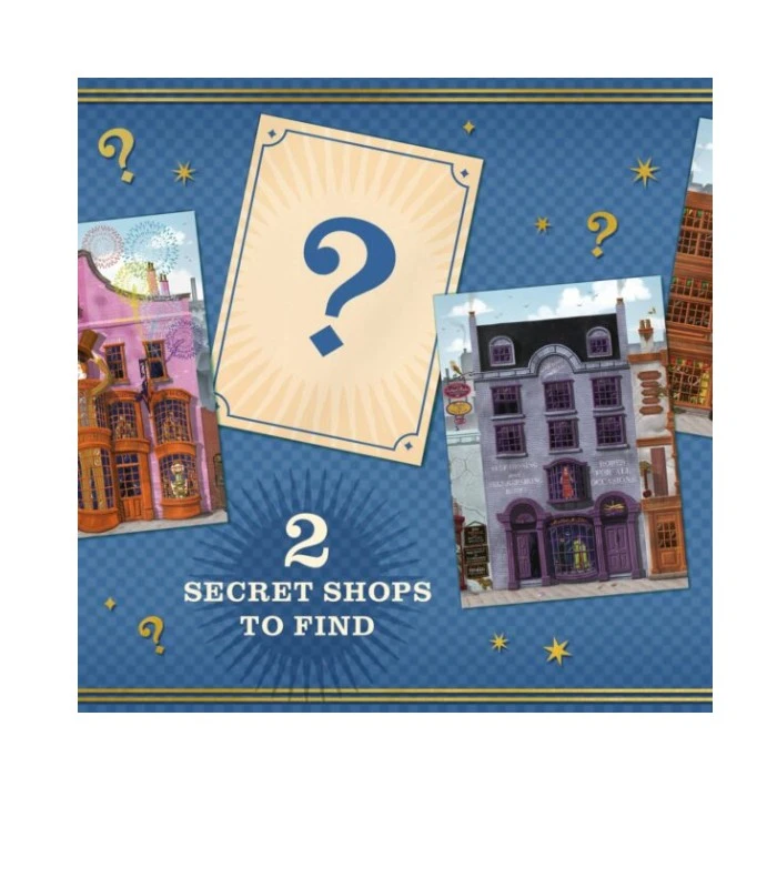 - Reproduction d’illustrations des Boutiques du Chemin de Traverse, soit 8 Cartes + 1 carte secrète d’une boutique + 1 carte aléatoire.