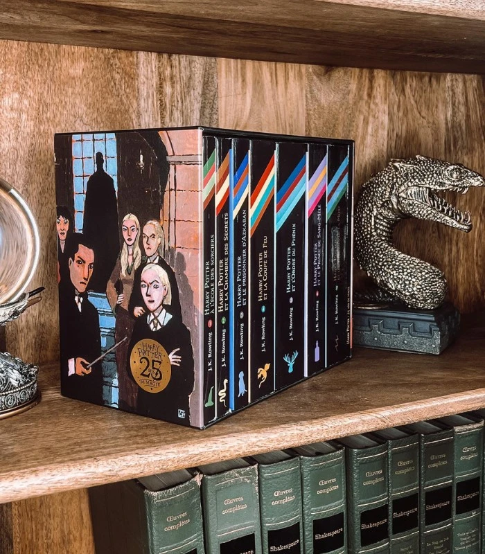 Ce magnifique coffret collector contient les sept livres en poche et un étui de 8 cartes postales.