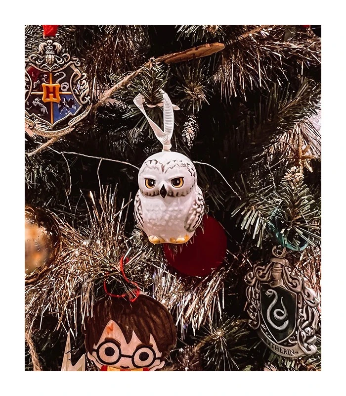 Ajoutez une touche de magie à votre sapin de Noël avec cette superbe décoration Hedwige, la fidèle chouette de Harry Potter. La décoration est en céramique, peinte à la main et un ruban de satin doré est présent pour la suspendre facilement. Un fantastique cadeau de fin d’année pour tous les fans de Harry Potter.