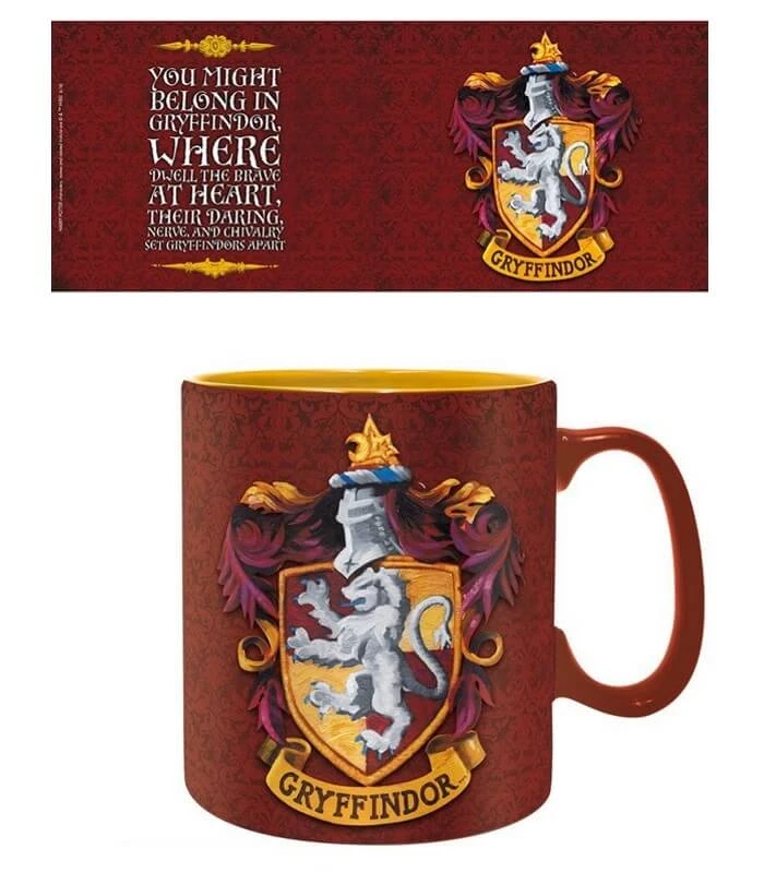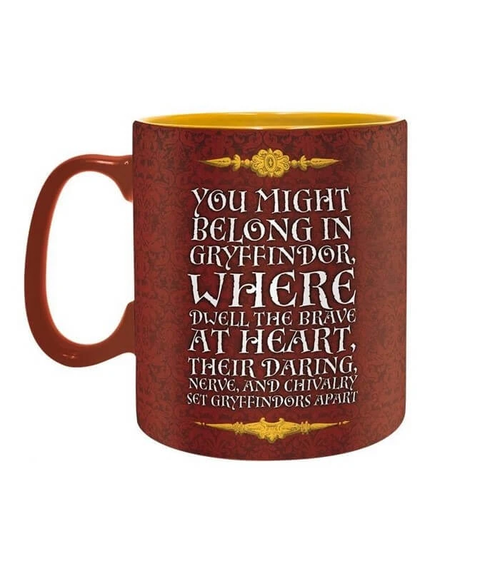 Après un match de Quidditch, installez-vous confortablement à la table de la Grande salle de Poudlard, Daily Prophet en guise de lecture, et dégustez votre chocolat chaud dans ce grand mug Gryffondor ! Ce mug est illustré par l’emblème des Gryffondors, ainsi que par les paroles de la chanson, en anglais, du Choixpeau vis-à-vis de leur maison: « Si vous allez à Gryffondor, Vous rejoindrez les courageux, Les plus hardis et les plus forts, Sont rassemblés en ce haut lieu».