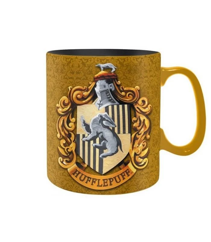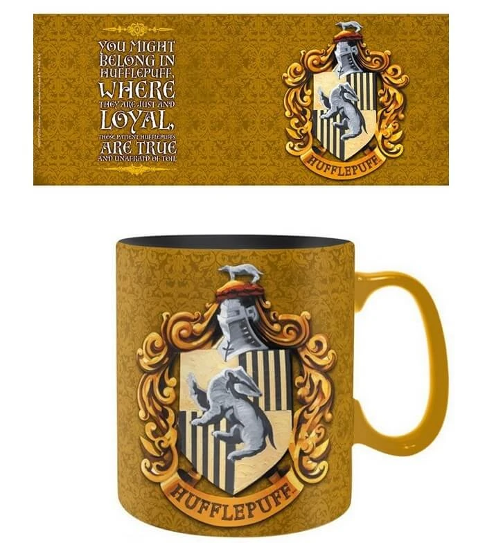 Véritables Poufsouffles, installez-vous dans votre salle commune, discutez avec le Moine gras, et prenez votre pause avec le mug aux couleurs de votre maison ! Ce grand mug est illustré par l’emblème des Poufsouffles, ainsi que par les paroles de la chanson, en anglais, du Choixpeau vis-à-vis de la maison Poufsouffle : « Si à Poufsouffle vous allez, comme eux vous serez justes et loyaux, ceux de Poufsouffle aiment travailler, et leur patience est proverbiale ».