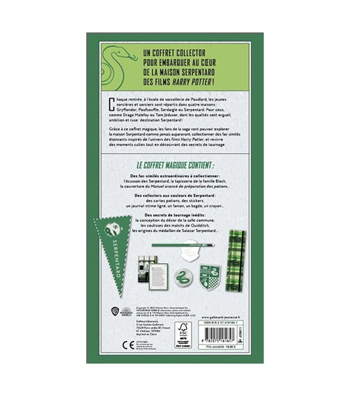 Grâce à ce coffret magique, les fans de la saga vont pouvoir explorer la maison Serpentard comme jamais auparavant, collectionner des fac-similés étonnants inspirés des films Harry Potter comme l’écusson Serpentard ,la tapisserie de la famille Black ainsi que la couverture du Manuel avancé de préparation des potions.