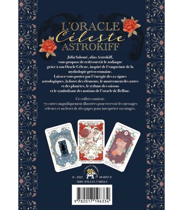 Jùlia Salomé, alias Astrokiff, vous propose de redécouvrir le zodiaque grâce à son Oracle Céleste, inspiré de l’empreinte de la mythologie gréco-romaine. Laissez-vous porter par l’énergie des 12 signes astrologiques, la force des éléments, le mouvement des astres et des planètes, le rythme des saisons et le symbolisme des notions de l’oracle de Belline.