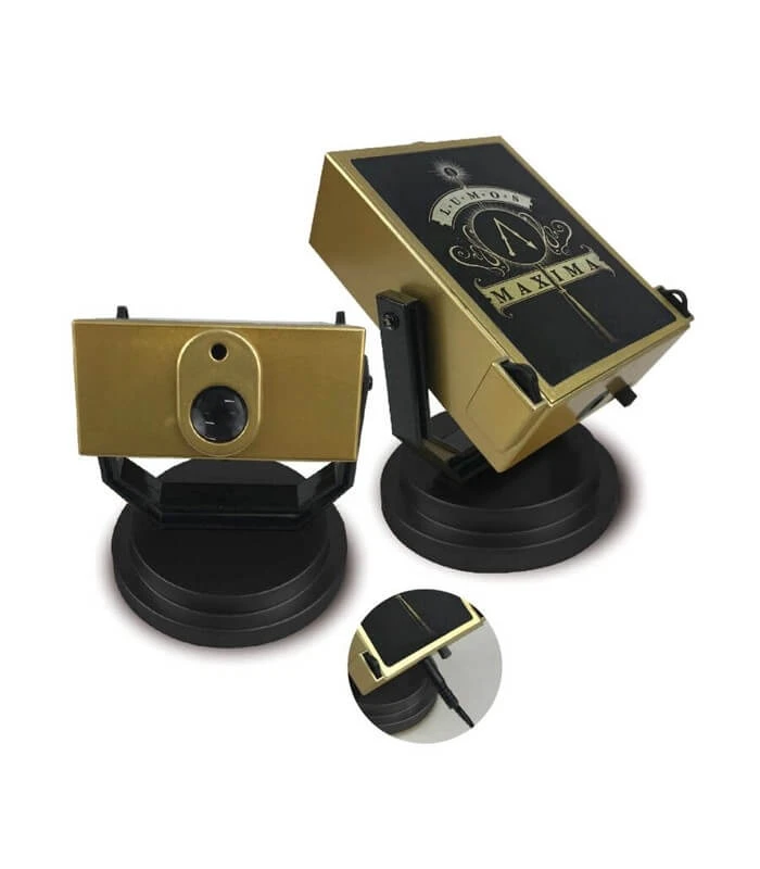 Lumos Maxima ! Projetez la magie d’Harry Potter sur vos murs et au plafond avec ce Projecteur Lumos ! Tout comme le sort « Lumos », ce projecteur éclairera l’atmosphère ! Pourront être projetées, jusqu’à 20 mètres de distance : une image d’Harry Potter sur son balai que vous pourrez ainsi faire voler dans la pièce, une image de l’emblème de Poudlard, et une image de la Marque des Ténèbres…Prenez garde à ce que les Mangemorts ne viennent pas vous rendre visite ! Nox !