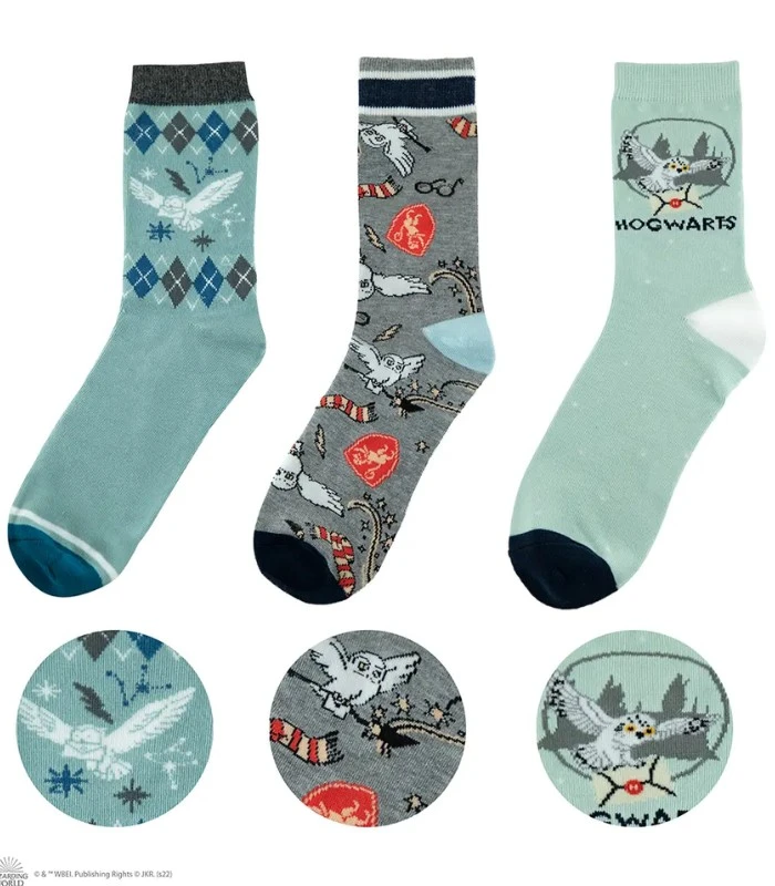 Adoptez, jusqu’aux pieds, les couleurs d’ Hedwige grâce à ce lot de 3 paires de chaussettes taille unique. C’est l’accessoire idéal pour parfaire son déguisement ou cosplay.