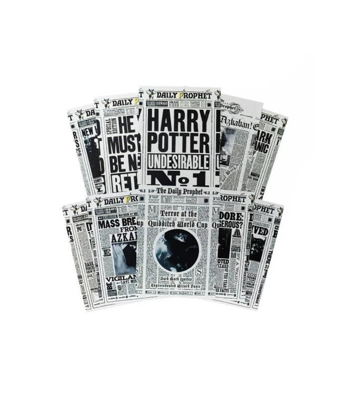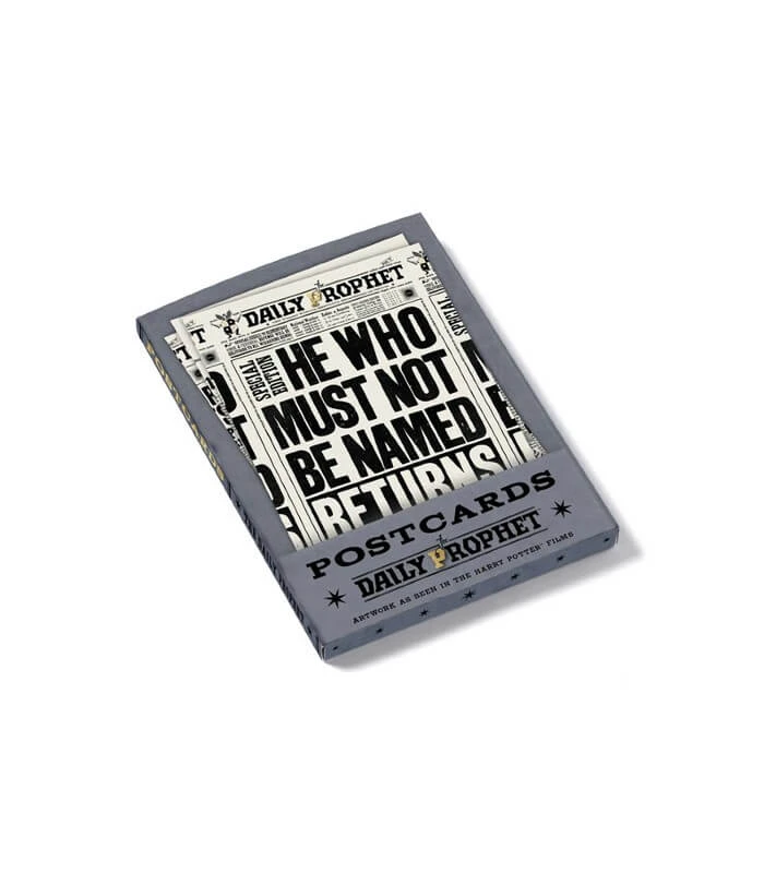 Le Daily Prophet est un journal sorcier dont le siège se trouve sur le Chemin de Traverse, il est livré quotidiennement par hibou à presque tous les foyers sorciers de Grande-Bretagne. The Daily Prophet est connu pour imprimer un contenu incliné à la demande du ministère de la Magie pour faire connaître la version préférée du ministère des événements en cours et agendas politiques. Ce lot de cartes postales comprend un coffret de 20 cartes, 10 motifs, 2 de chaque.