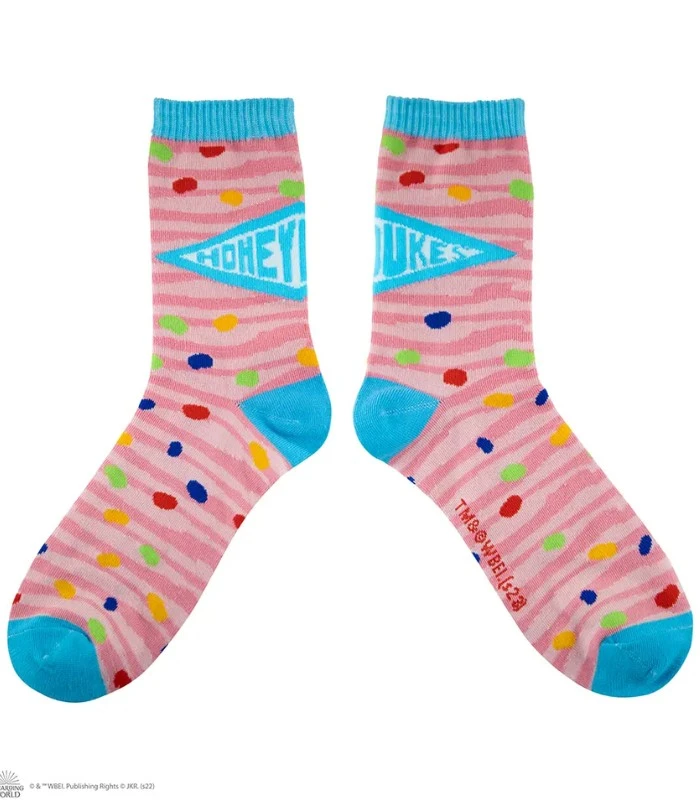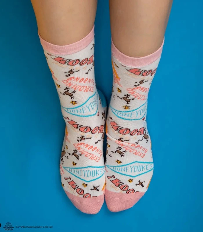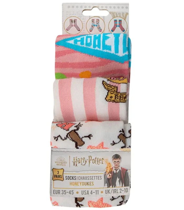 Adoptez, jusqu’aux pieds, les couleurs de la boutique Honeydukes grâce à ce lot de 3 paires de chaussettes taille unique. C’est l’accessoire idéal pour parfaire son déguisement ou cosplay.