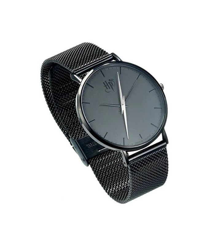 Profitez de cette montre noir éclaire dont l’aiguille des secondes représente la forme de la célèbre cicatrice de Harry Potter faite par Lord Voldermort lors ce qu’il utilisa le sortilège impardonnable Avada Kedavra.