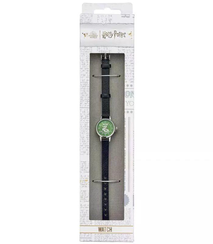 Cette petite montre est le bijoux idéale pour les enfants et les grands. Elle est finement ornée du Serpent Serpentard sur le cadran aux couleurs de la maison, ainsi que d’un élégant petit bracelet noir en polyurethane.
