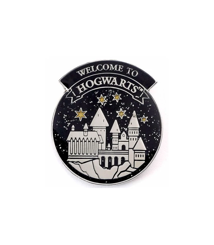 Voici le Pin’s de Bienvenue à Poudlard! Écriture en anglais »Welcome to Hogwarts »