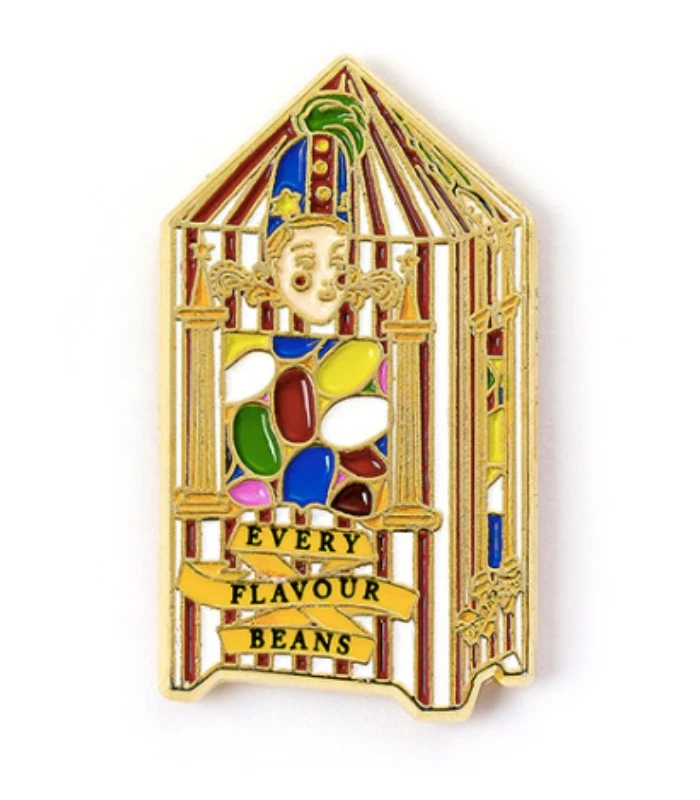 Voici le Pin’s Dragées de Bertie Crochue ! Le goût n’est pas au rendez-vous mais l’esthétique ravira les Potterheads.