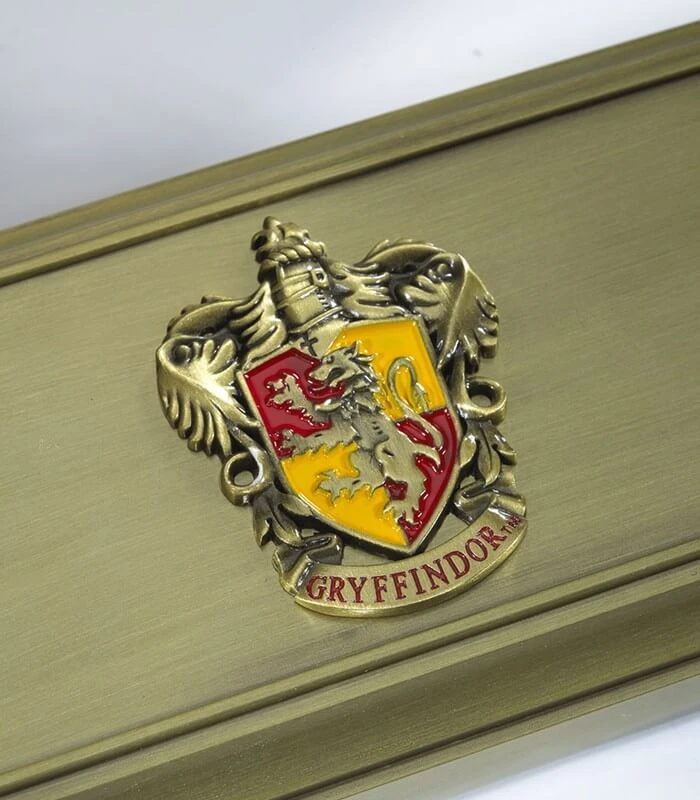 Mettez en valeur votre baguette magique préférée en l’exposant sur ce magnifique présentoir en métal Gryffondor ! Cette pièce est majestueuse avec ses deux lions et son écusson sculpté sur le socle : la pièce idéale pour les collectionneurs et les fans de la maison Gryffondor.