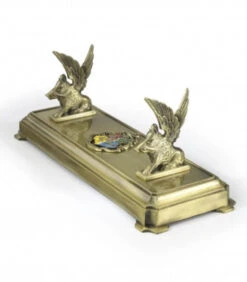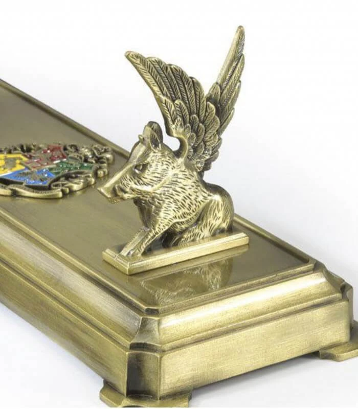 Mettez un valeur votre superbe baguette magique sur ce très beau présentoir en métal Poudlard. Doté de deux sangliers ailés pour soutenir votre baguette et d’un blason sculpté, cette pièce est parfaite pour les collectionneurs ou les fans de Poudlard !