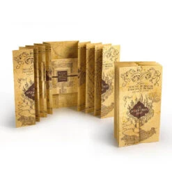Dites « je jure solennellement que mes intentions sont mauvaises » et la carte du Maraudeur apparaîtra sur ce morceau de parchemin. Il faut savoir que cette carte a été crée par James Potter, Sirius Black, Remus Lupin et Peter Pettigrow pendant leurs études à Poulard. C’est les Fred et George Weasley qui l’ont remis à Harry Potter pour qu’il puisse se rendre à Pré-au-lard. Cette réplique de la carte du Maraudeur correspond à la taille authentique de l’originale. Son papier en parchemin imite parfaitement la texture du papier ancien : c’est un très bel objet pour les Potterheads.