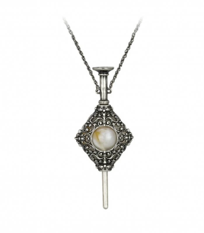 Voici la réplique officielle du pendentif de Grindelwald Gellert, sorciers et mage noir aussi puissant que dangereux. Lié par un pacte de sang que Grindewald conserve au coeur du pendentif, Dumbledore ne peut arrêter et affronter le mage noir et confie cette tâche au magizoologiste Norbert Dragonneau. Cette réplique du pendentif apparu dans Les Animaux Fantastiques est de couleur argent et possède une pierre blanche /jaune nacrée.