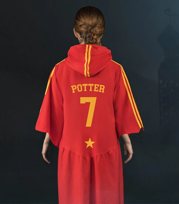 Tout comme Harry Potter, devenez à votre tour un joueur de Quidditch de l’équipe Gryffondor grâce à cette robe personnalisable ! Les 3 feuilles de transferts thermiques vous permettront d’inscrire votre nom et votre chiffre dans le dos et au niveau de l’écusson sur la face avant.