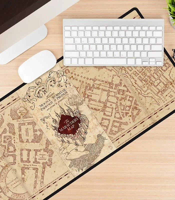 Un tapis de souris oui, mais pas n’importe quel tapis ! Celui-ci est à l’effigie de la célèbre carte du Maraudeur, confort et magie à votre service. Ce tapis ne mesure pas moins de 90 cm x 40 cm, de quoi y poser votre souris, votre clavier, votre baguette et peut être même votre breuvage préféré. Avec sa base en caoutchouc anti-dérapante vous aurez l’assurance que ce dernier ne bouge pas d’un centimètre. Attention tout de même, ce dernier résistera à toute chute de liquide mais ce ne sera pas une excuse pour un devoir noyé sous l’eau.