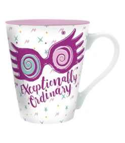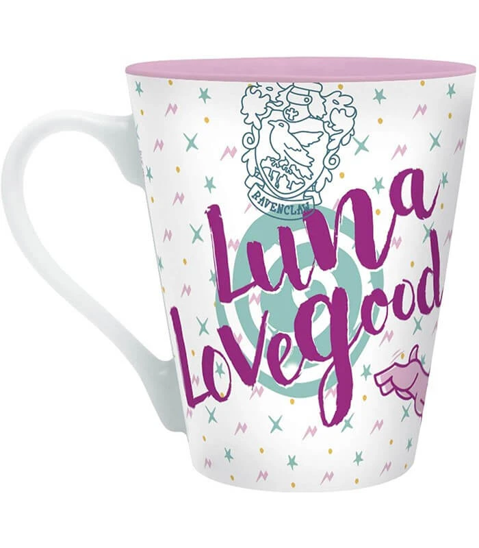 Sur cette magnifique tasse Luna on retrouve son blason Serdaigle et le lapin qui est son Patronus.