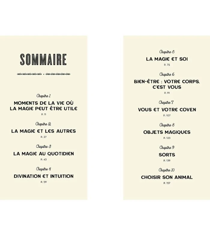 Numérologie & Astrologie • Tarots & Oracles • Pierres & Cristaux • Exercices d’ancrage, de centrage et de méditation • Familiers & Animaux spirituels • Sorts d’attraction et d’invocation • Bain magique & Douche de positivité • Eau d’affirmation • Magie purificatrice • Autel personnalisé • Calendrier magique • Infusions, huiles et recettes à base d’herbes et d’épices • Bougies & Encens • Sigils, chiromancie, runes et oghams • Et bien plus encore !